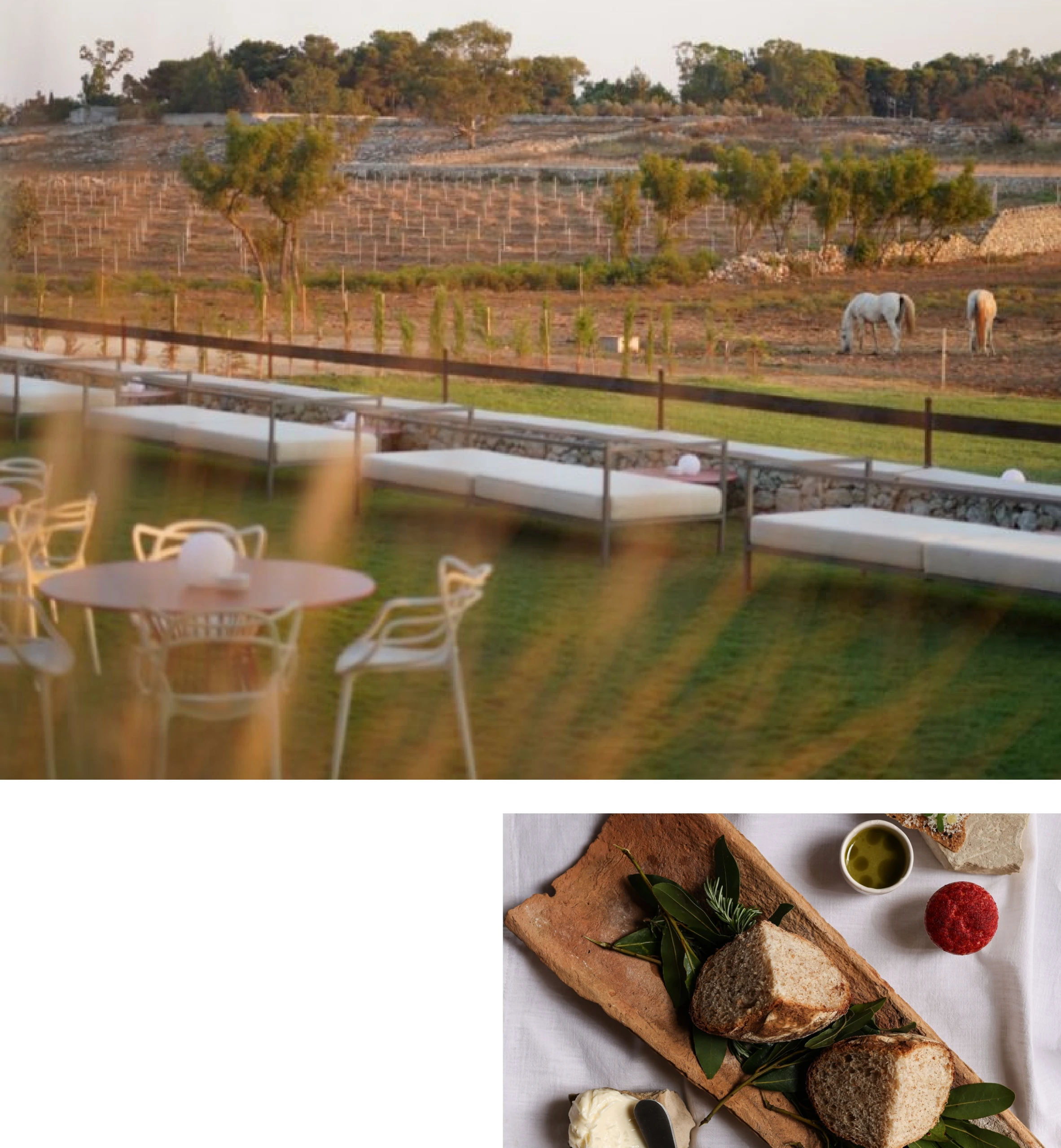 Linee essenziali, materiali autentici e dettagli contemporanei dialogano con la pietra antica della masseria, in un equilibrio sottile tra passato e presente.